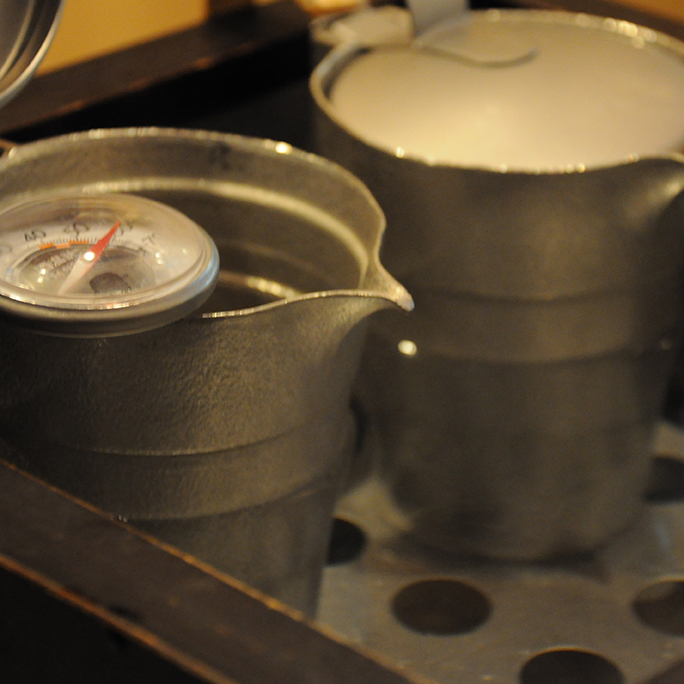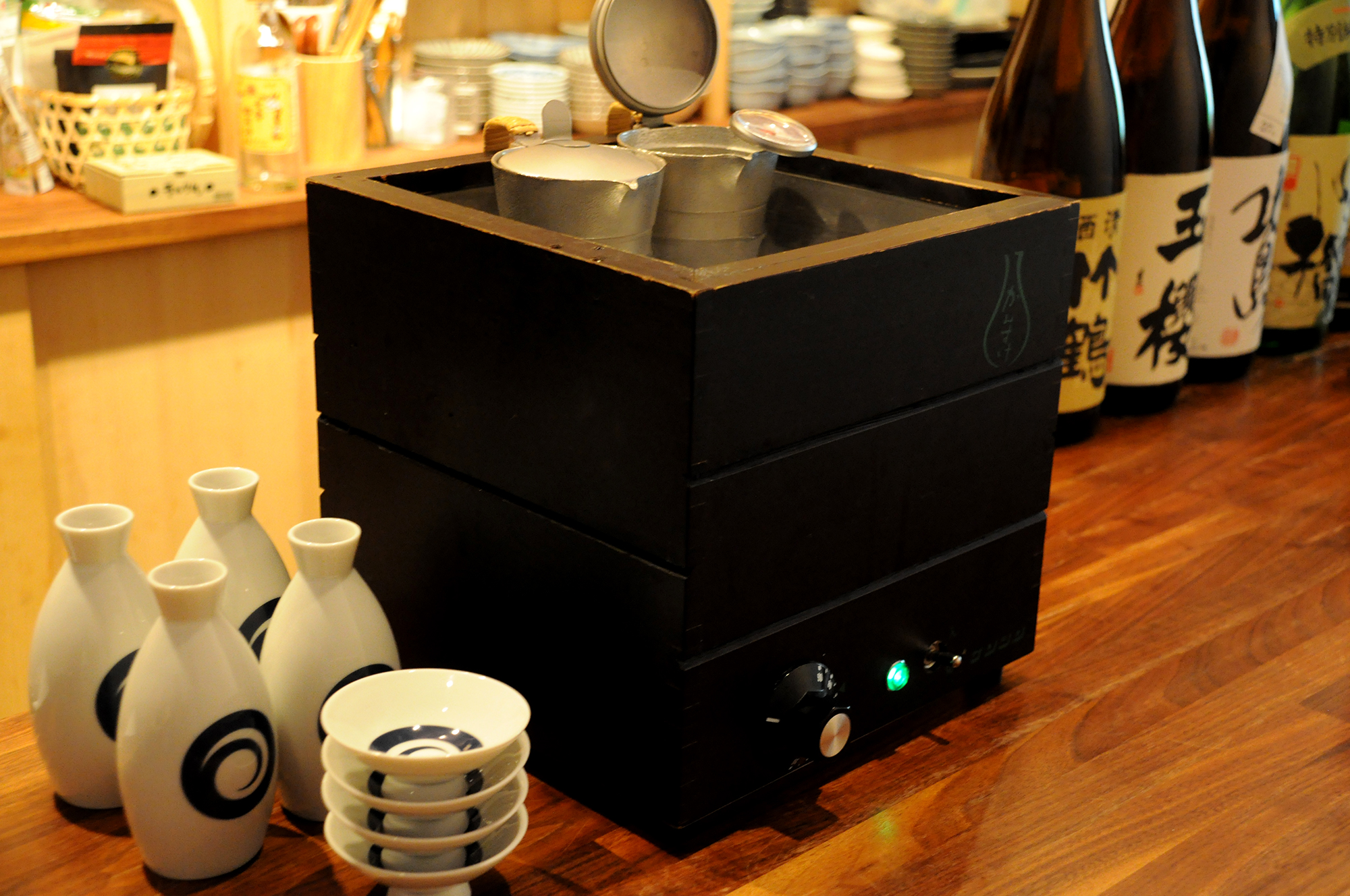 So, what is the ideal way to head sake? There are actually specific tools for the task. There is a special piece of cookware called the douko (boiler) or yusen (double-boiler), in which a tokkuri (sake carafe) is placed into a bigger pot of hot water and heated indirectly. If you see a square-ish pot on the bar counter filled with steaming hot water, this is a very good sign. Stop into a place like this, and you’re almost guaranteed to have a superb kan-zake experience, as the sake-loving proprietor slowly warms your chosen brew to its ideal temperature.